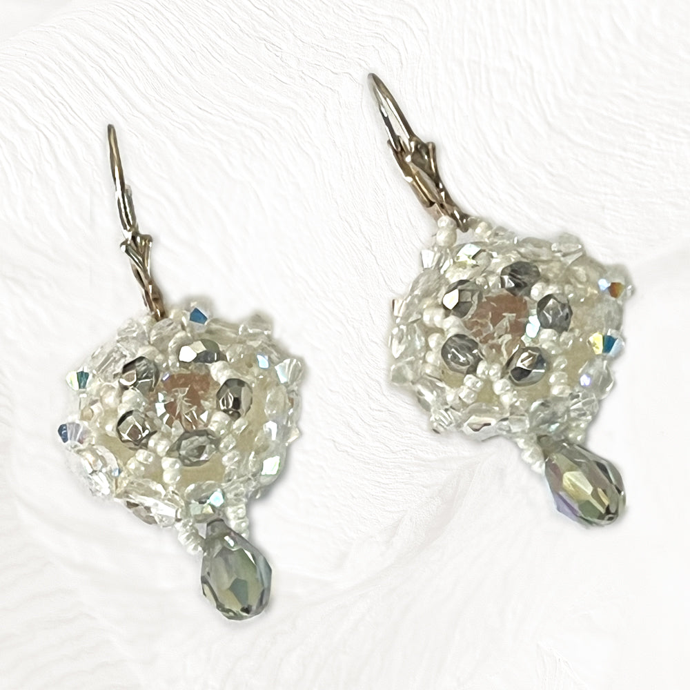 L'alliance des perles de Bohème grises avec l'éclat du cabochon Swarovski crée un jeu de lumière délicat qui accompagne vos gestes avec grâce et poésie.
