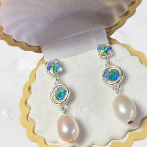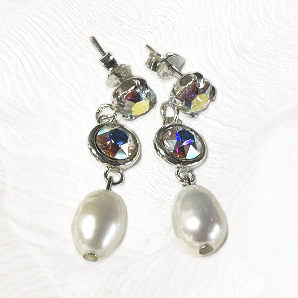 Boucles d'oreilles Lys Artisanales Perles Miyuki & Cristal Swarovski & Perles d'eau douce